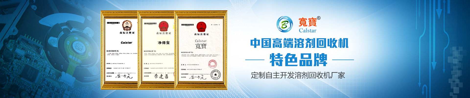 Calstar品牌源于1984年成立的美國加州公司Calstar Associates Company(美國凱勒達(dá)有限公司),Cal是加州California英文縮寫, star意為“明星”,Calstar的含義是“加州之星”。Calstar寬寶創(chuàng)業(yè)團(tuán)隊(duì)形成于1995年,名稱源“寬以待物,變廢為寶”2001年在大陸成立深圳市寬寶環(huán)保設(shè)備有限公司,專業(yè)從事溶劑回收機(jī)的研制和銷售。2003年設(shè)立臺(tái)灣寬...